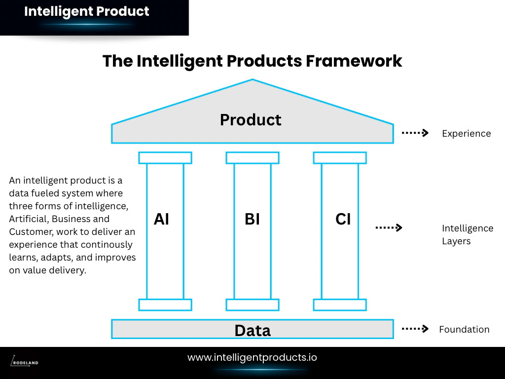 Product Experience: The user-facing layer, where all the intelligence comes together in the actual features and interface. It’s the design, the interactions, and the value delivered to the customer. An intelligent product’s experience is typically personalized, fluid, and responsive. It may proactively adjust to the user (thanks to AI), present timely insights (thanks to BI), and feel tailor-made (thanks to CI). This is ultimately where the intelligence manifests to the user.